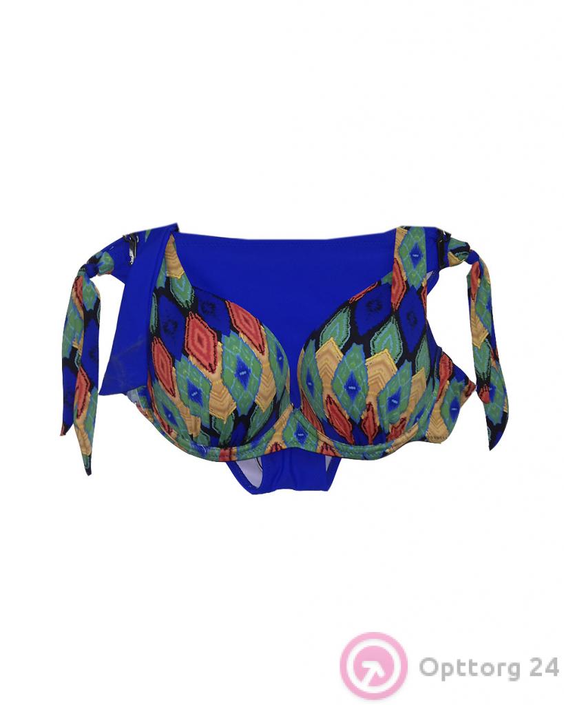 Купальник раздельный голубой с бежево бирюзовым принтом оптом