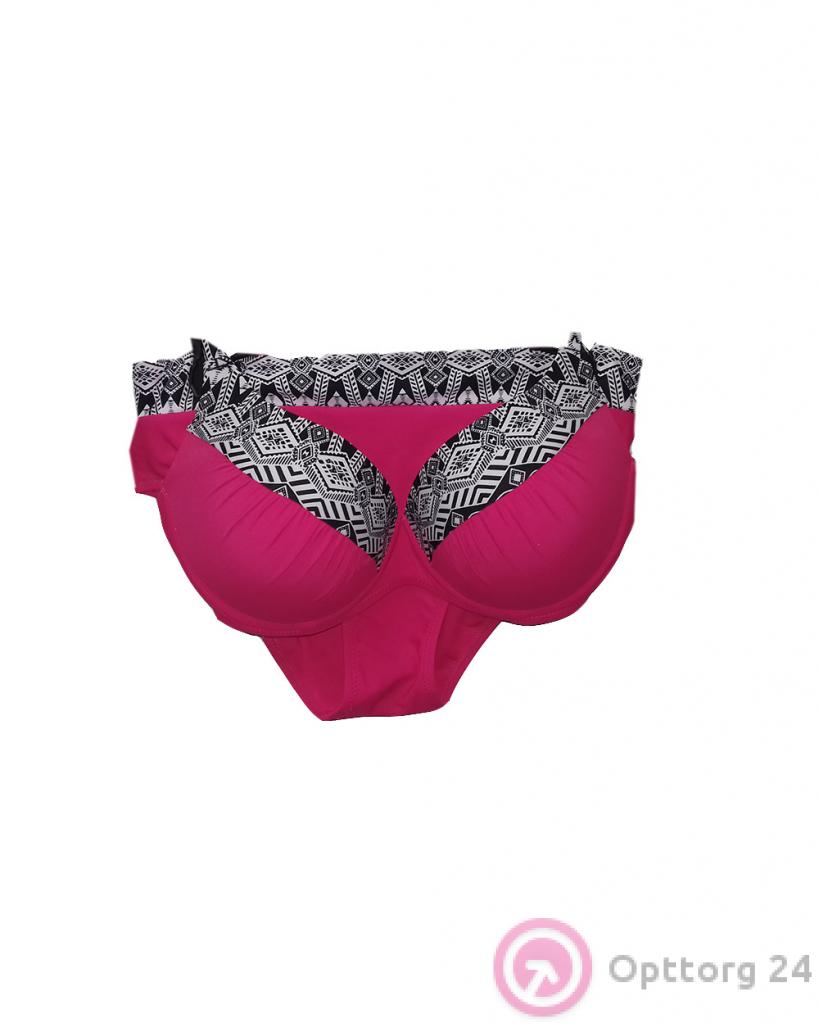 Купальник раздельный розовый с белой декорацией оптом