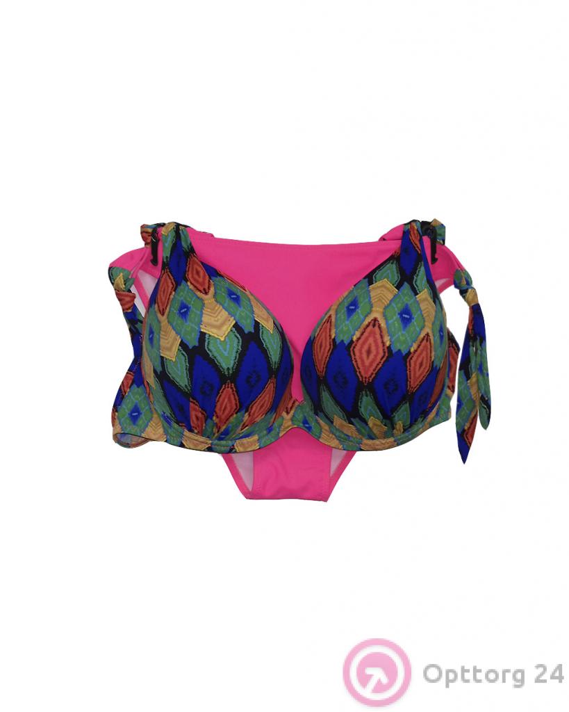 Купальник раздельный розовый с бежево бирюзовым принтом оптом