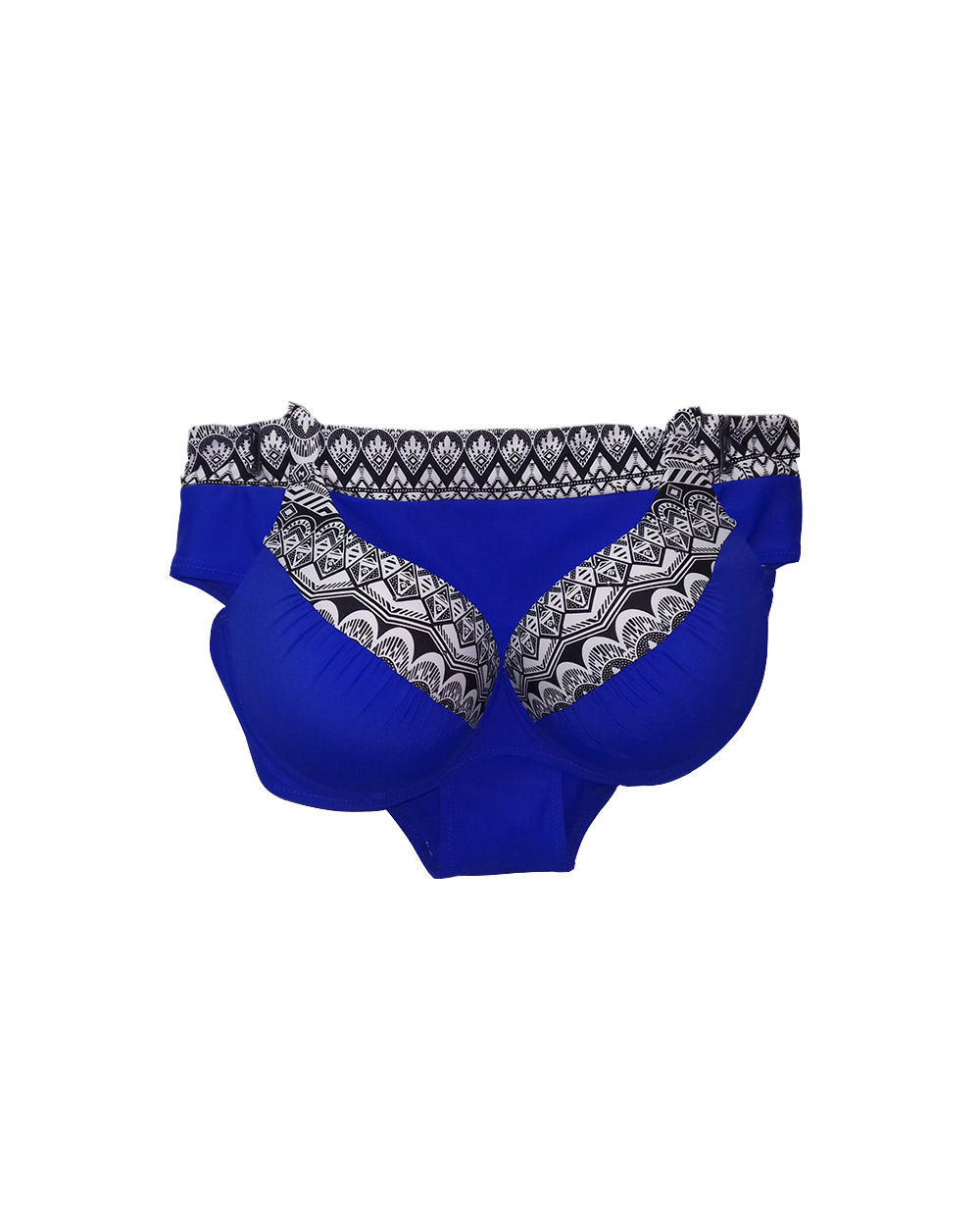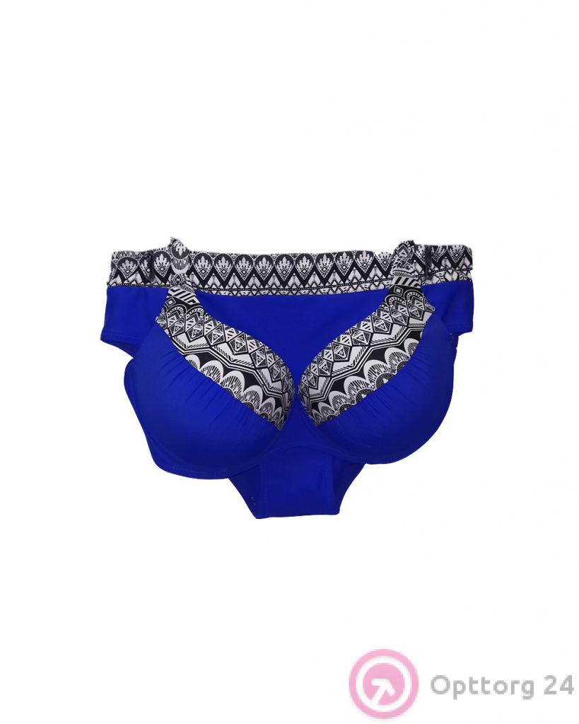 Плавки-трусики имеют среднюю посадку с широким драпированным поясом. Бюст с формированными чашечками.