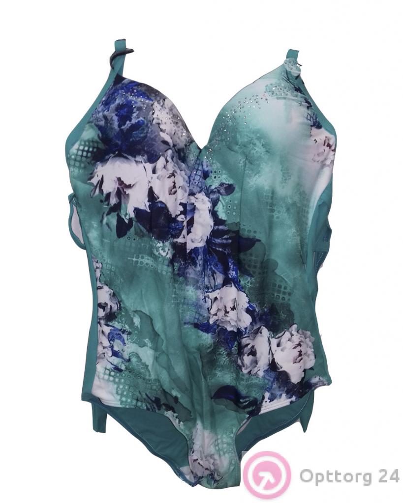 Купальник слитный бирюзового цвета с синей абстакцией оптом