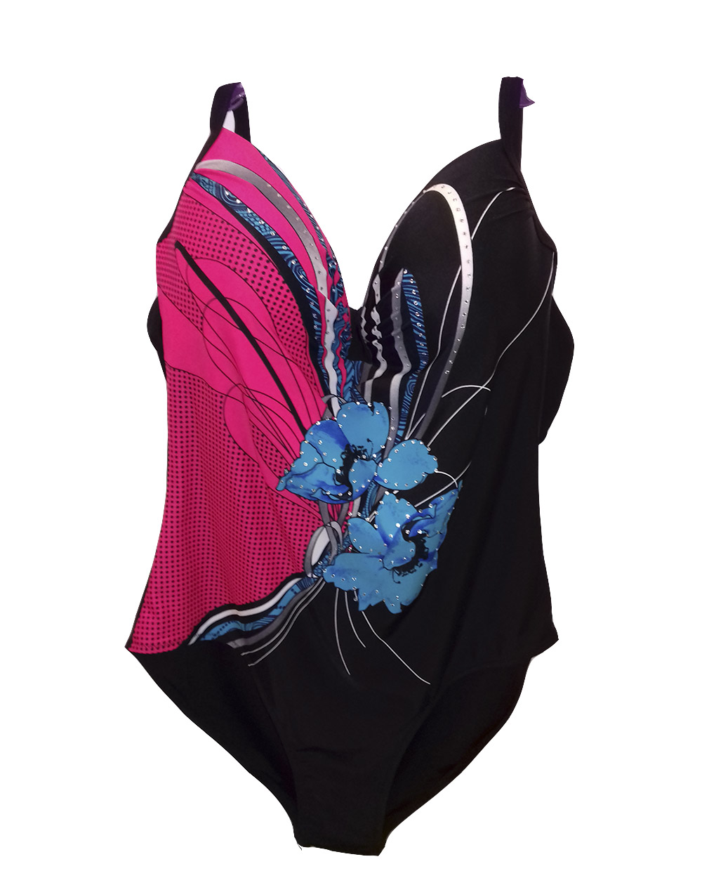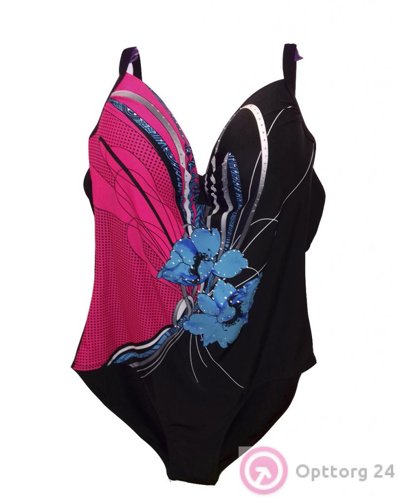 Слитный купальник с женственным силуэтом. Глубокое декольте, вшитые чашечки.