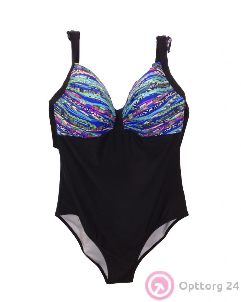 Стильный слитный купальник с контрастными голубыми чашечками. Регулируемые бретели, открытая спинка.