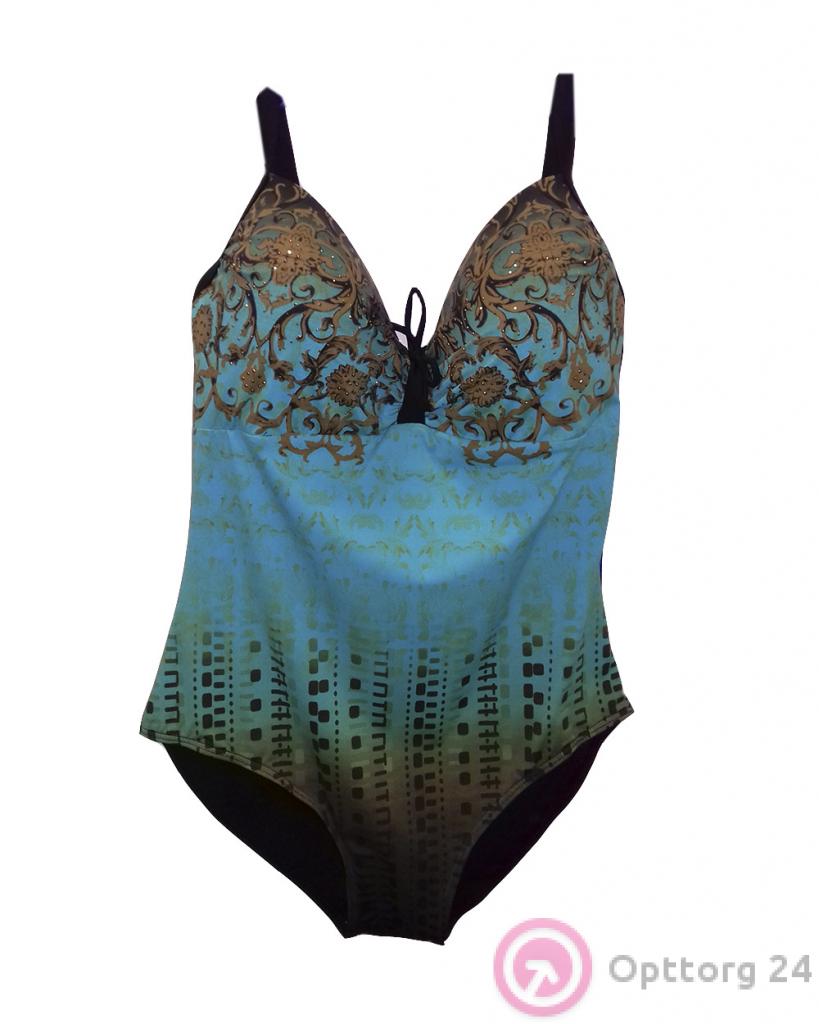 Купальник слитный голубого цвета с принтом и бантиком оптом
