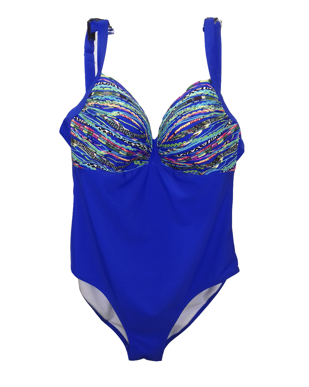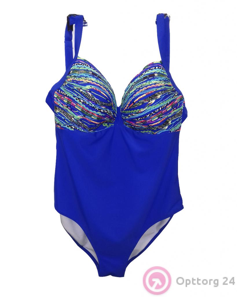Яркий купальник голубого цвета. Изюминку образу придадут вшитые чашечки. Модель на тонких бретелях.