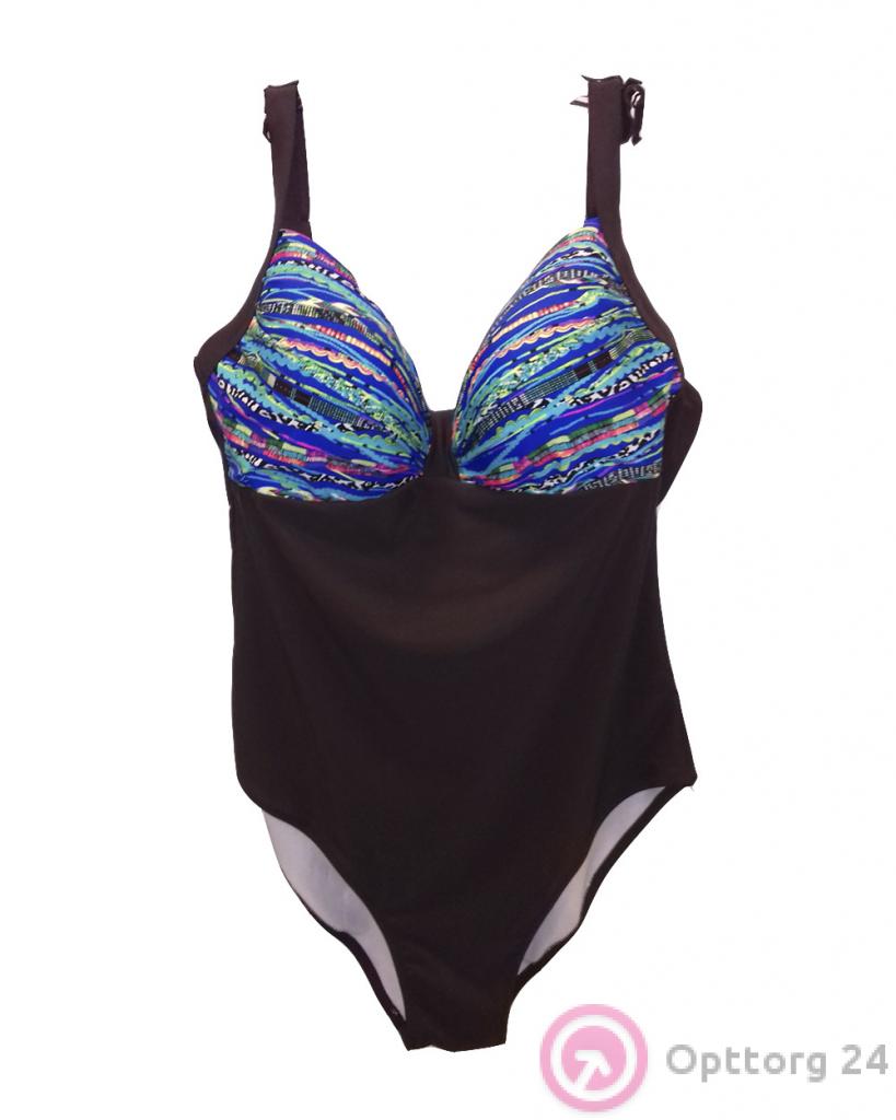 Слитный женский купальник. Чашечки декорированны разноцветным узором. Чашечки на подкладке, отлично сидит благодаря моделирующей вставке. Бретели регулируются.