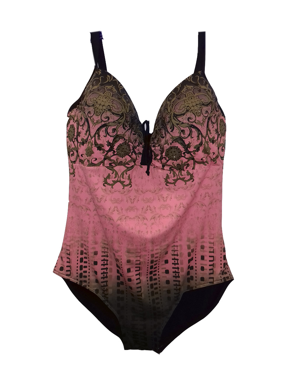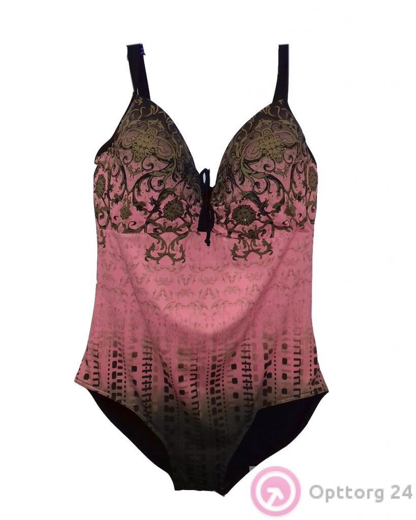 Купальник слитный розового цвета с принтом и бантиком оптом
