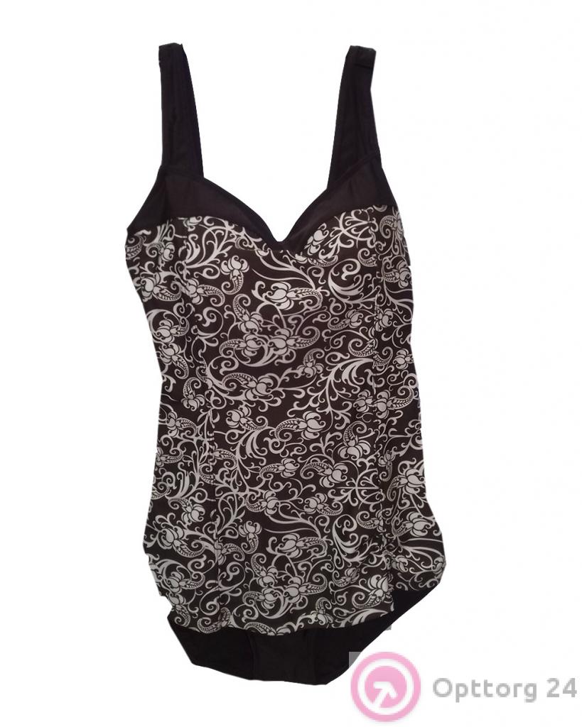 Купальник слитный с черной окантовкой и белым принтом оптом