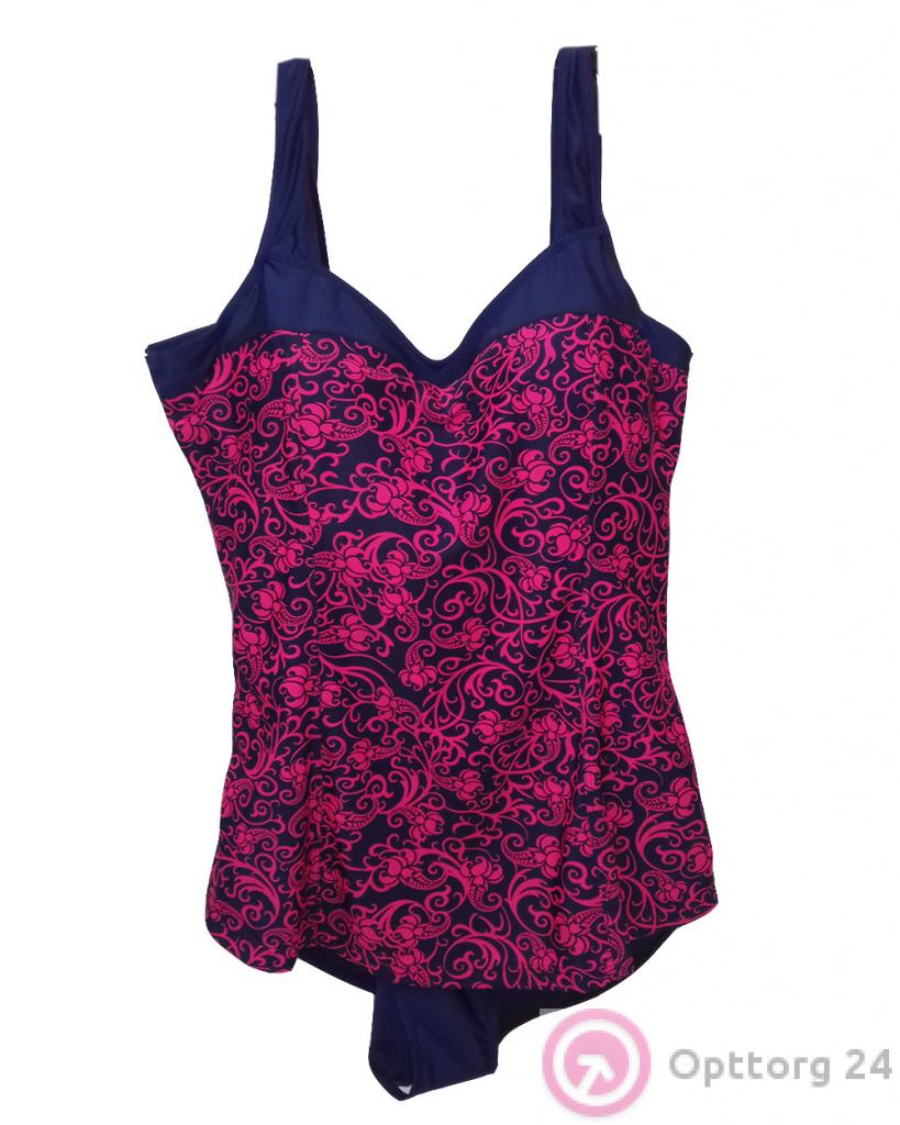 Купальник слитный с синей окантовкой и розовым принтом оптом