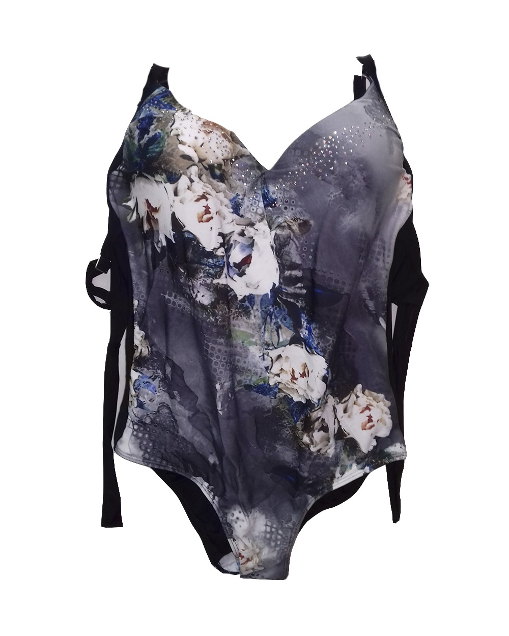 Слитный купальник на тонких регулируемых бретелях. Модель с завязкой на спине.