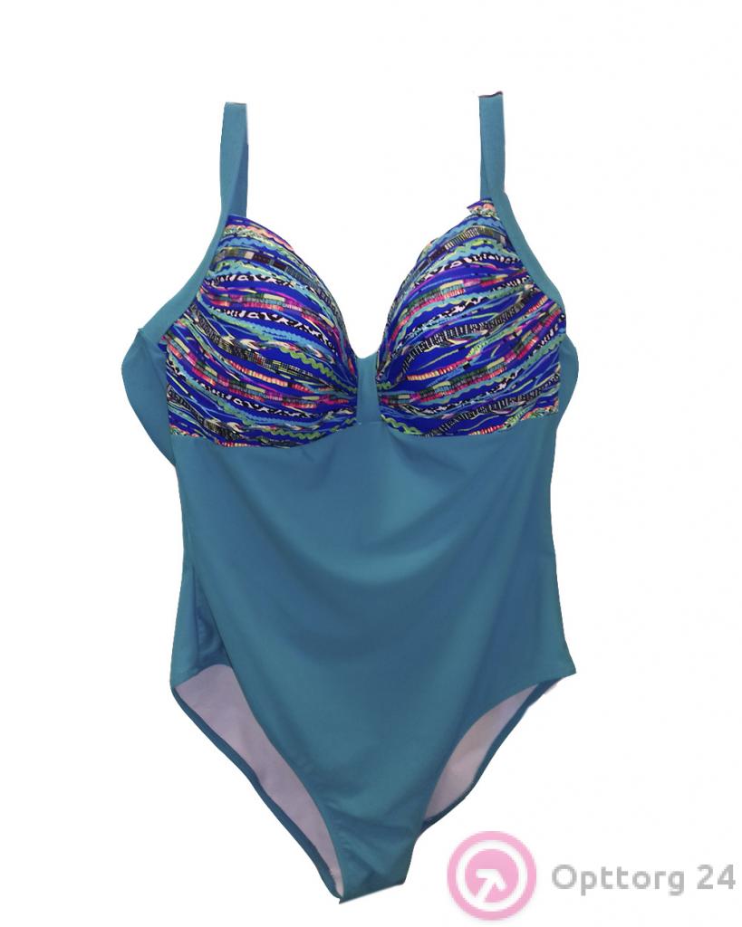 Купальник слитный светло голубой с разноцветными чашечками оптом