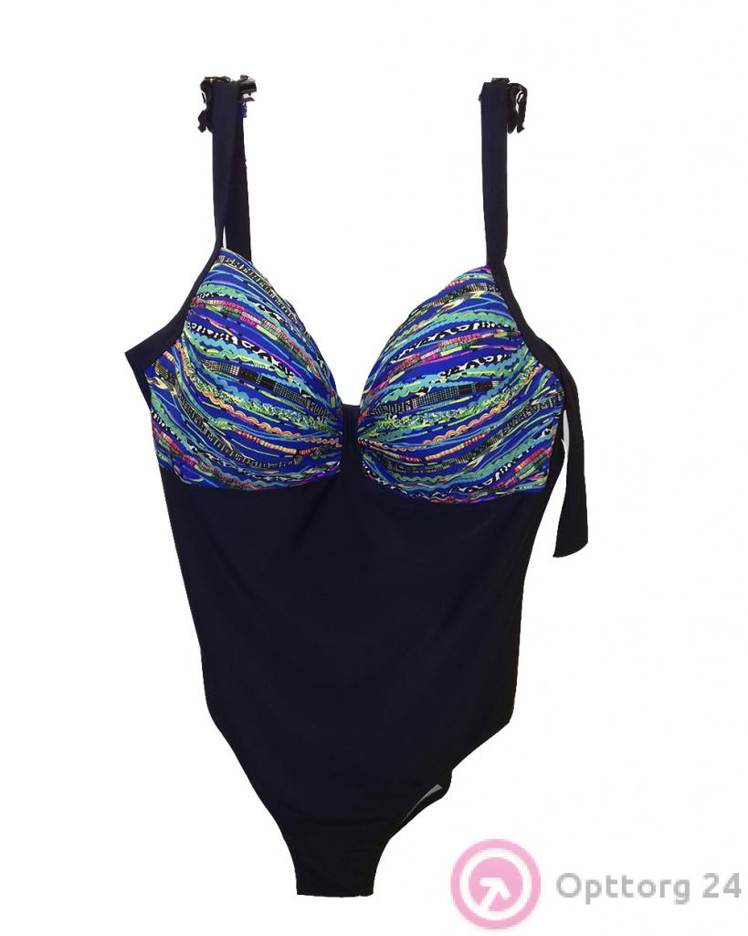 Купальник слитный темно синий с разноцветными чашечками оптом