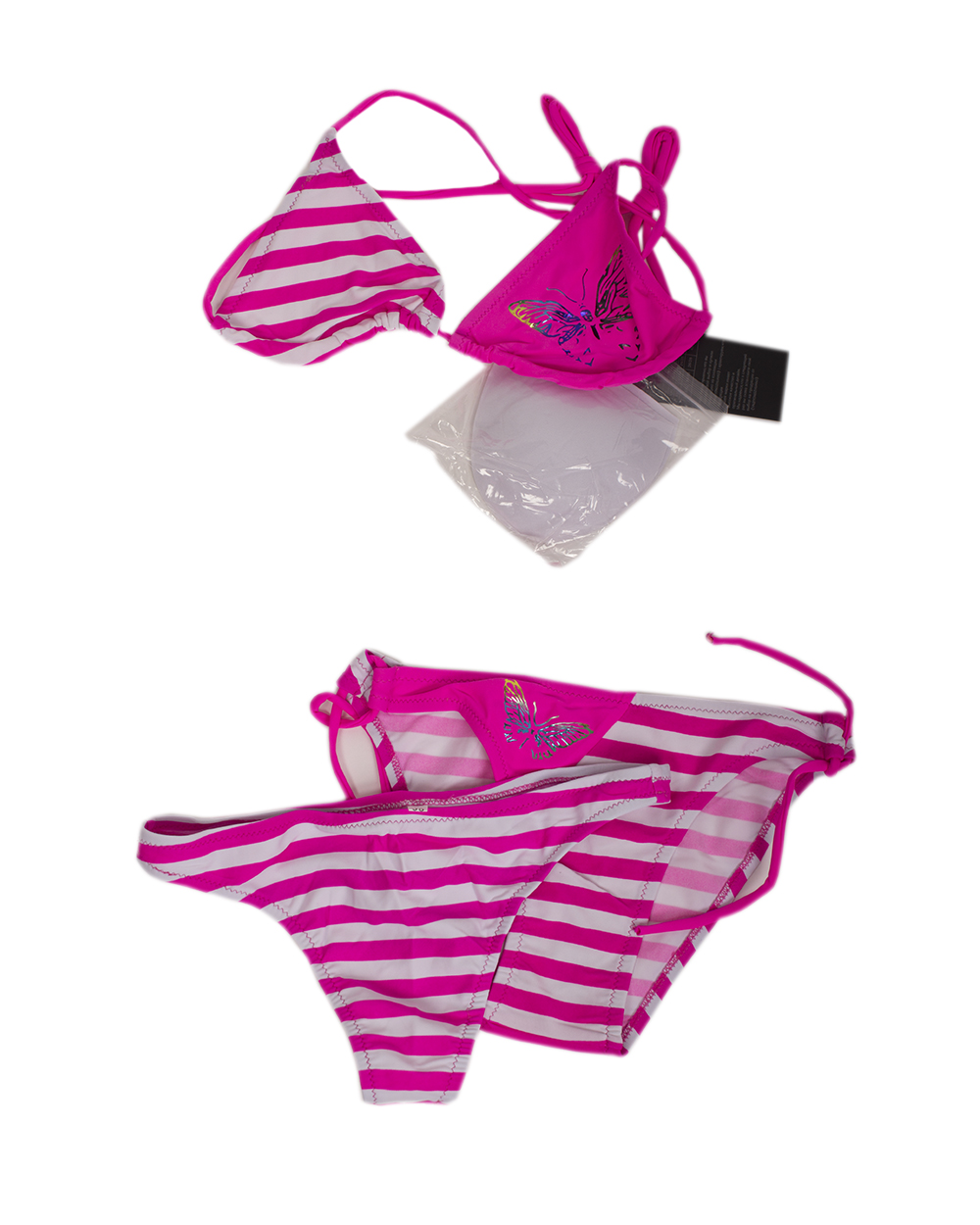 Стильный и яркий купальник для уверенных в себе женщин. В комплект включены два вида плавок и шикарный бюстгальтер с рисунком-бабочкой.