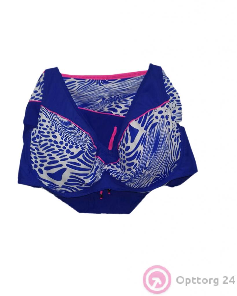 Купальник женский бело-синий с принтом оптом