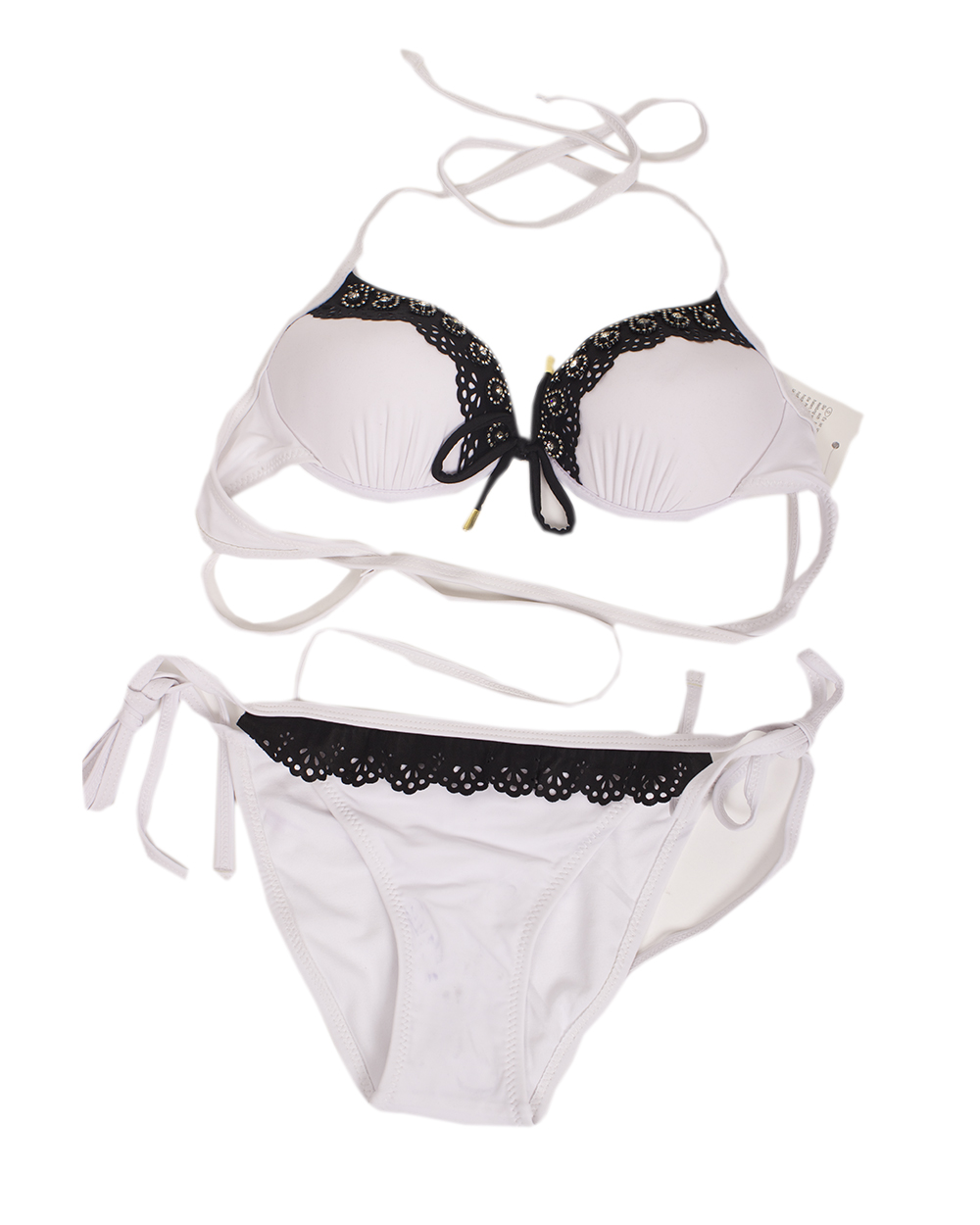 Оригинальный купальник с косточкой на чашечках. Бюстгальтер отлично приподнимает грудь делая её визуально больше. Плавки имеют среднюю посадку.