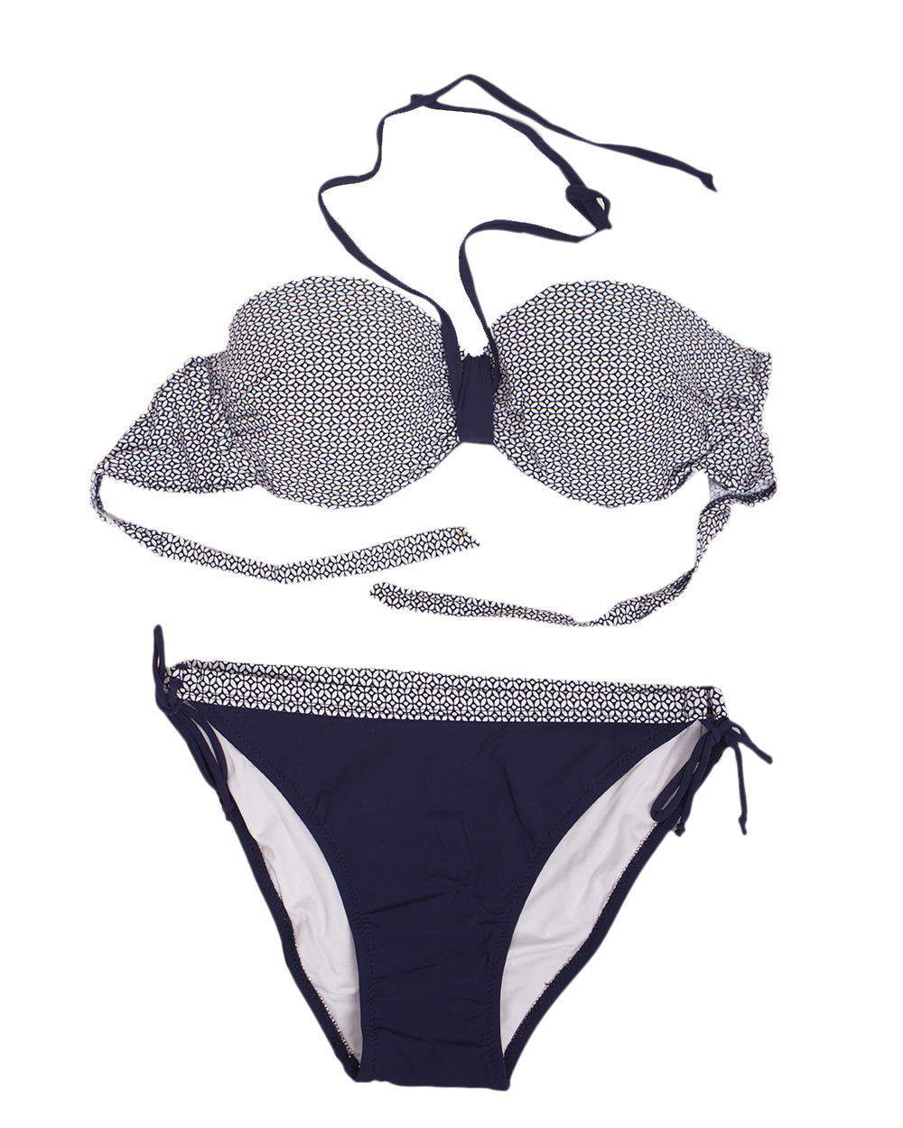 Удобная модель с бюстгальтером на завязках. Тонкая ленточка-завязка на шею легко отсоединяется. Насыщенные фиолетовые шорты и контрастный лиф будут отлично смотреться и выделят вас из толпы.