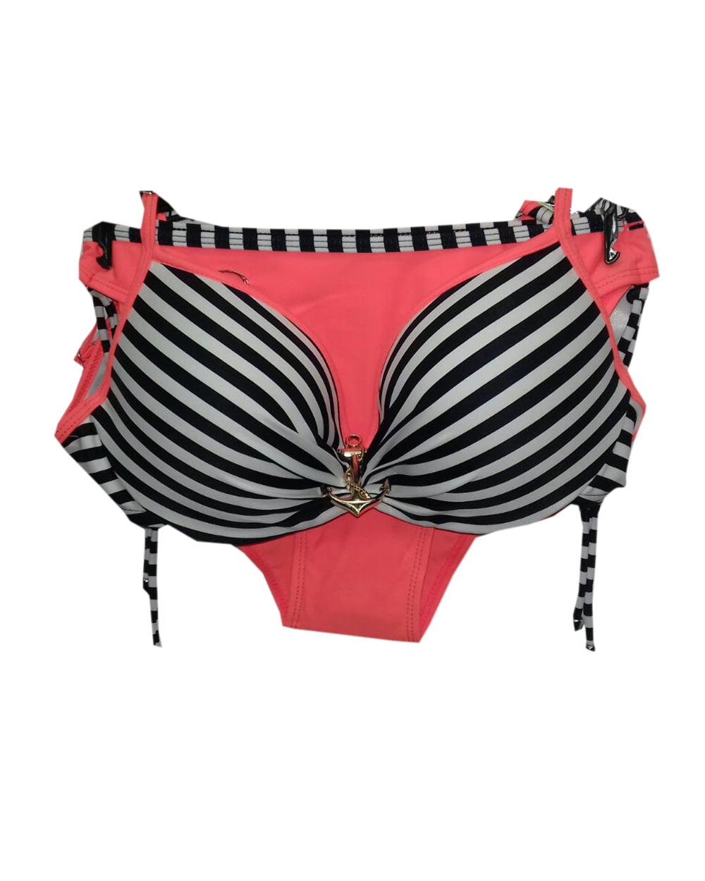 Купальник женский кораллового цвета с полосатым принтом оптом