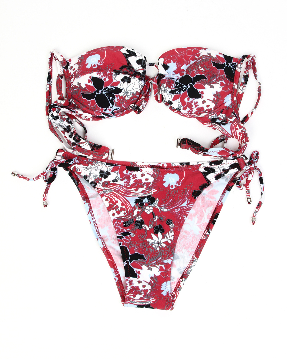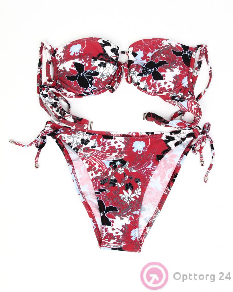 Купальник женский красный с цветочным принтом оптом