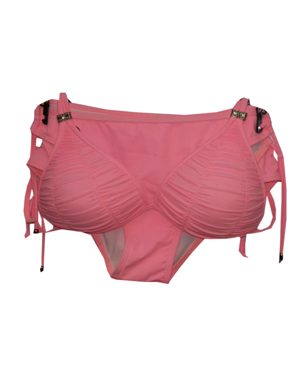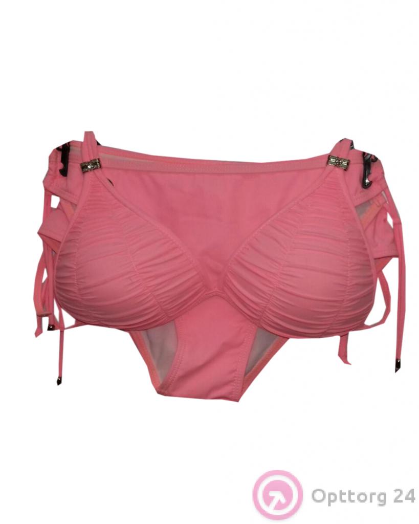 Раздельный купальник с треугольным топом и классическими трусиками-плавками. Лиф украшен прострочкой.