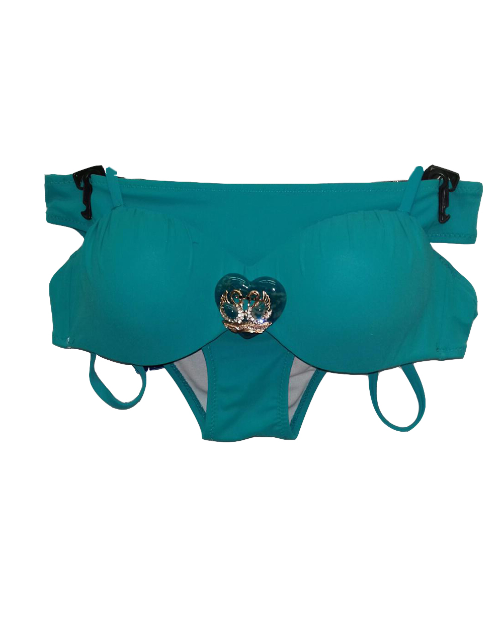 Комфортный современный купальник голубого цвета. Набор состоит из лифа на бретелях и трусиков-плавок.