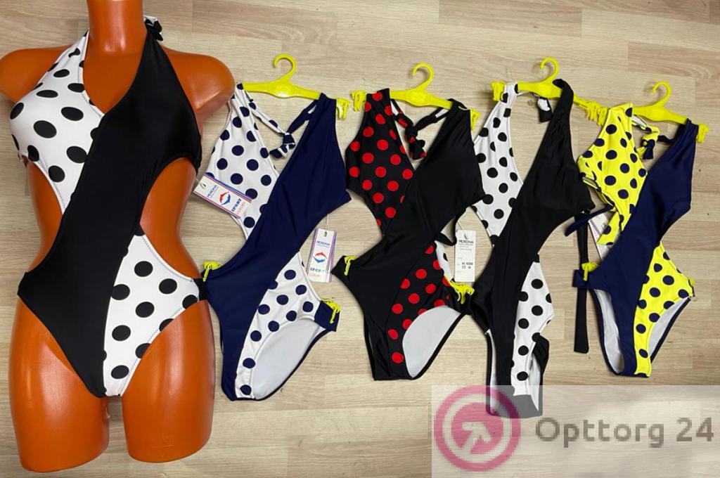 Описание: Купальник женский оригинальный, закрытый, с принтом гороха. Мягкая чашечка.