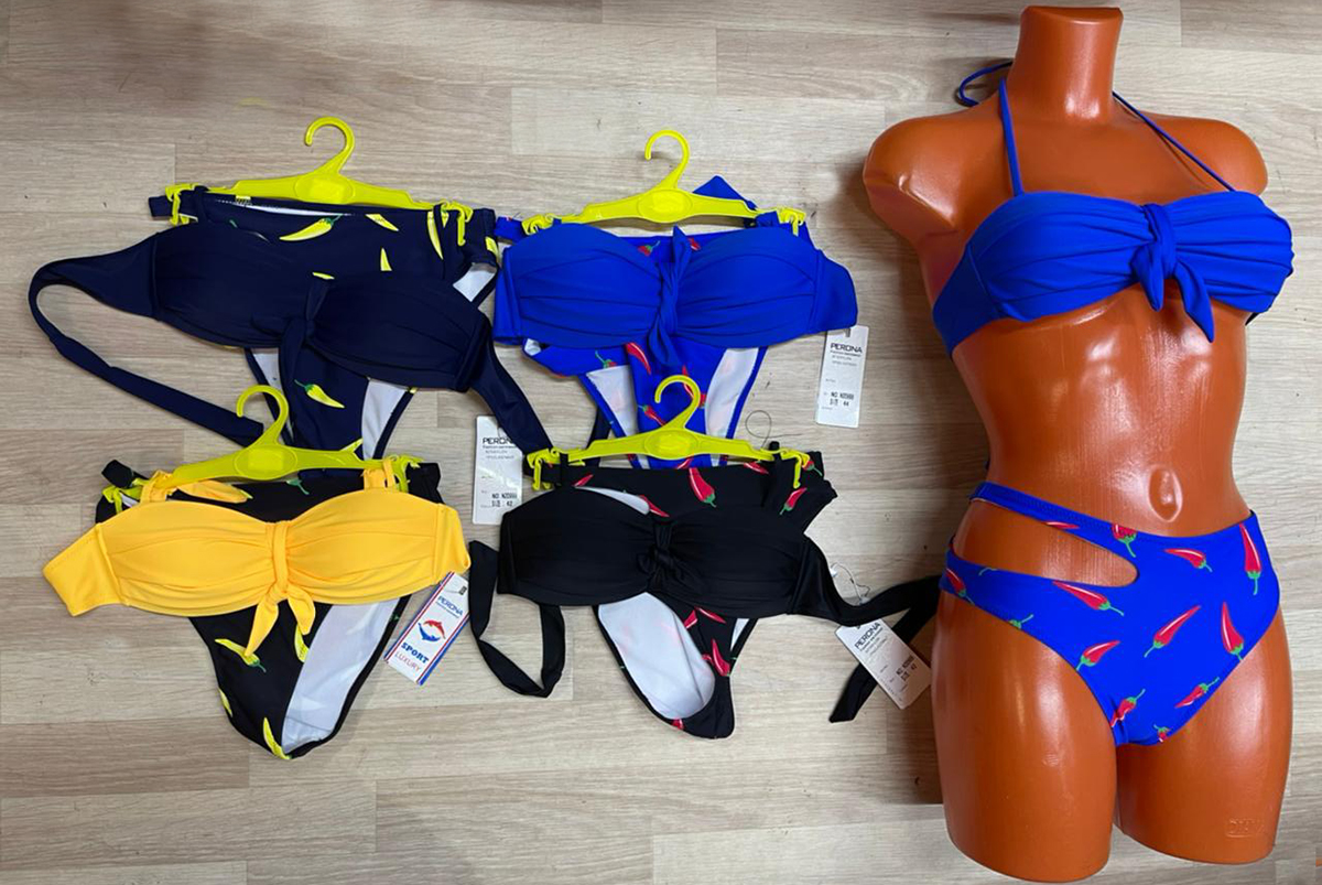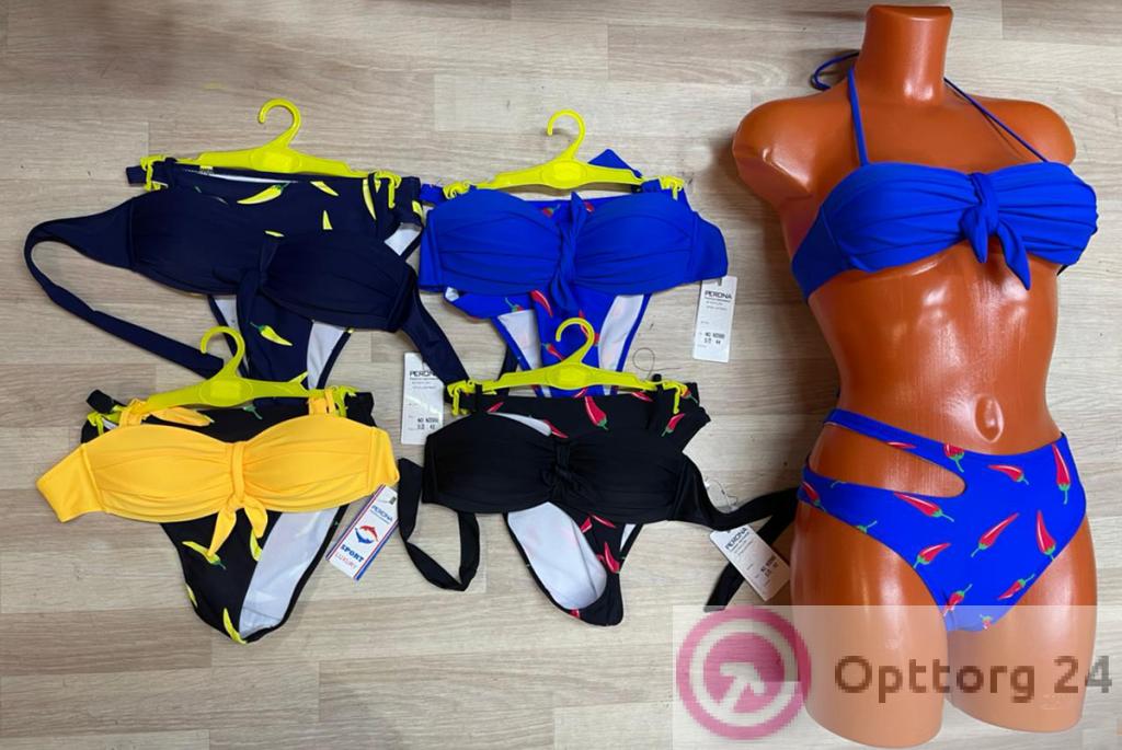 Описание: Купальник женский открытый с завязками на шее. Оригинальные трусики с принтом перчиков. Мягкая чашечка со вставкой.
