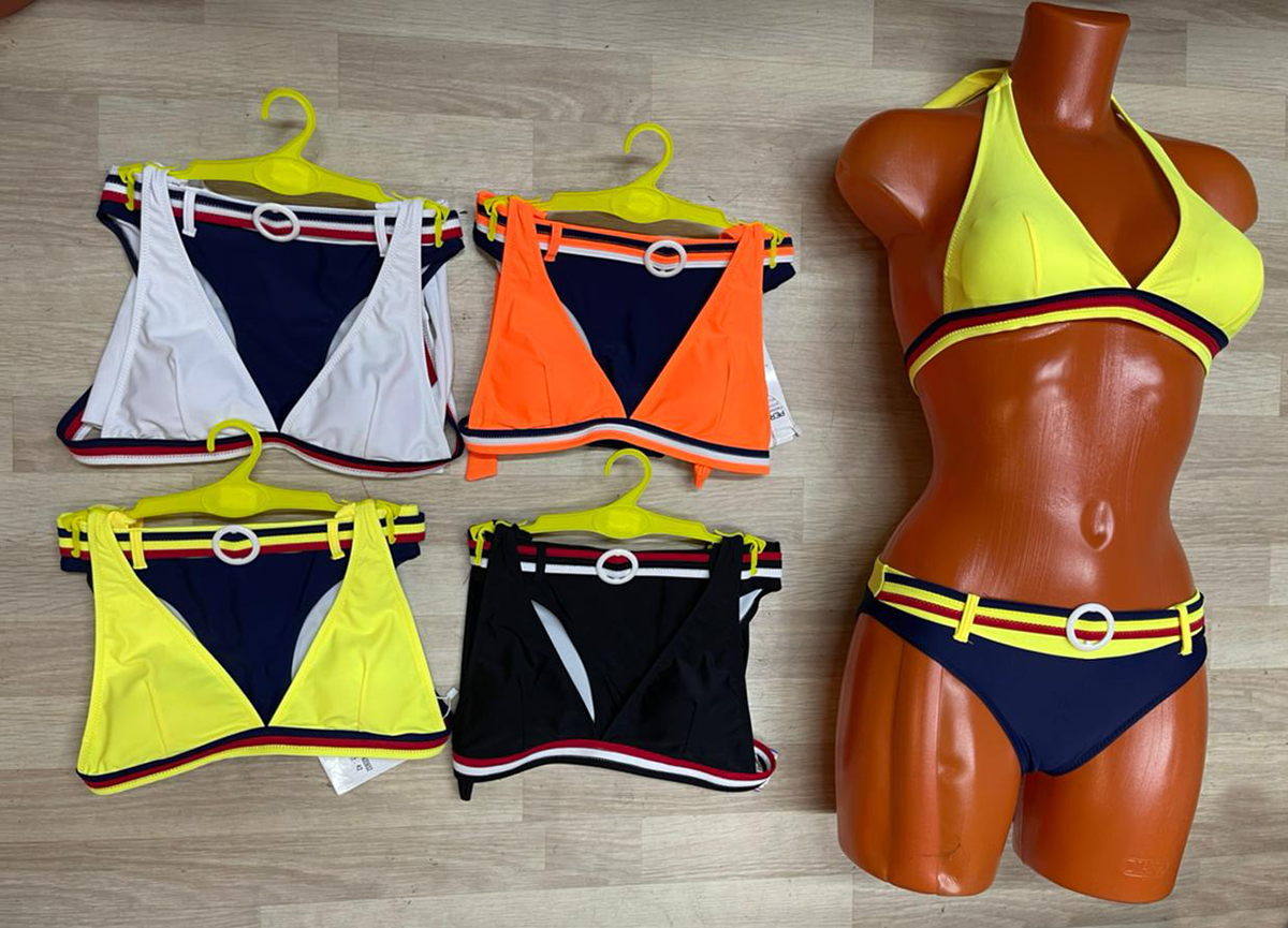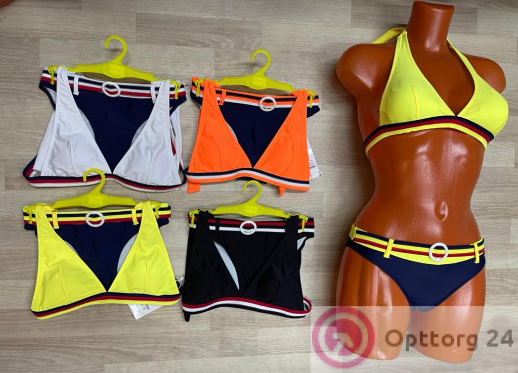 Описание: Купальник женский открытый с завязками на шее. Трусики декорированы ремешком. Мягкая чашечка со вставкой.