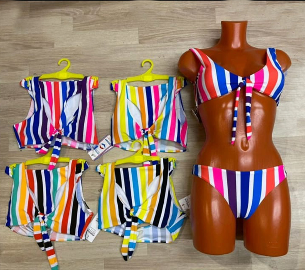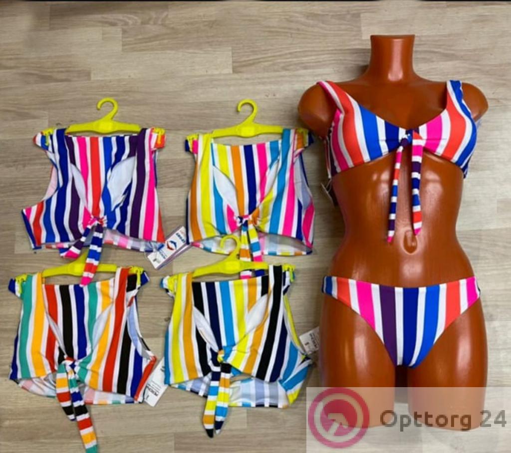 Описание: Купальник женский открытый, в полосочку, на широких бретелях. Мягкая чашечка со вставкой.