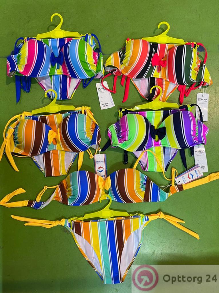 Описание: Купальник женский открытый яркой расцветки, на тоненьких бретелях. Лиф украшен бантиком. Трусики с завязочками. Мягкая чашечка.