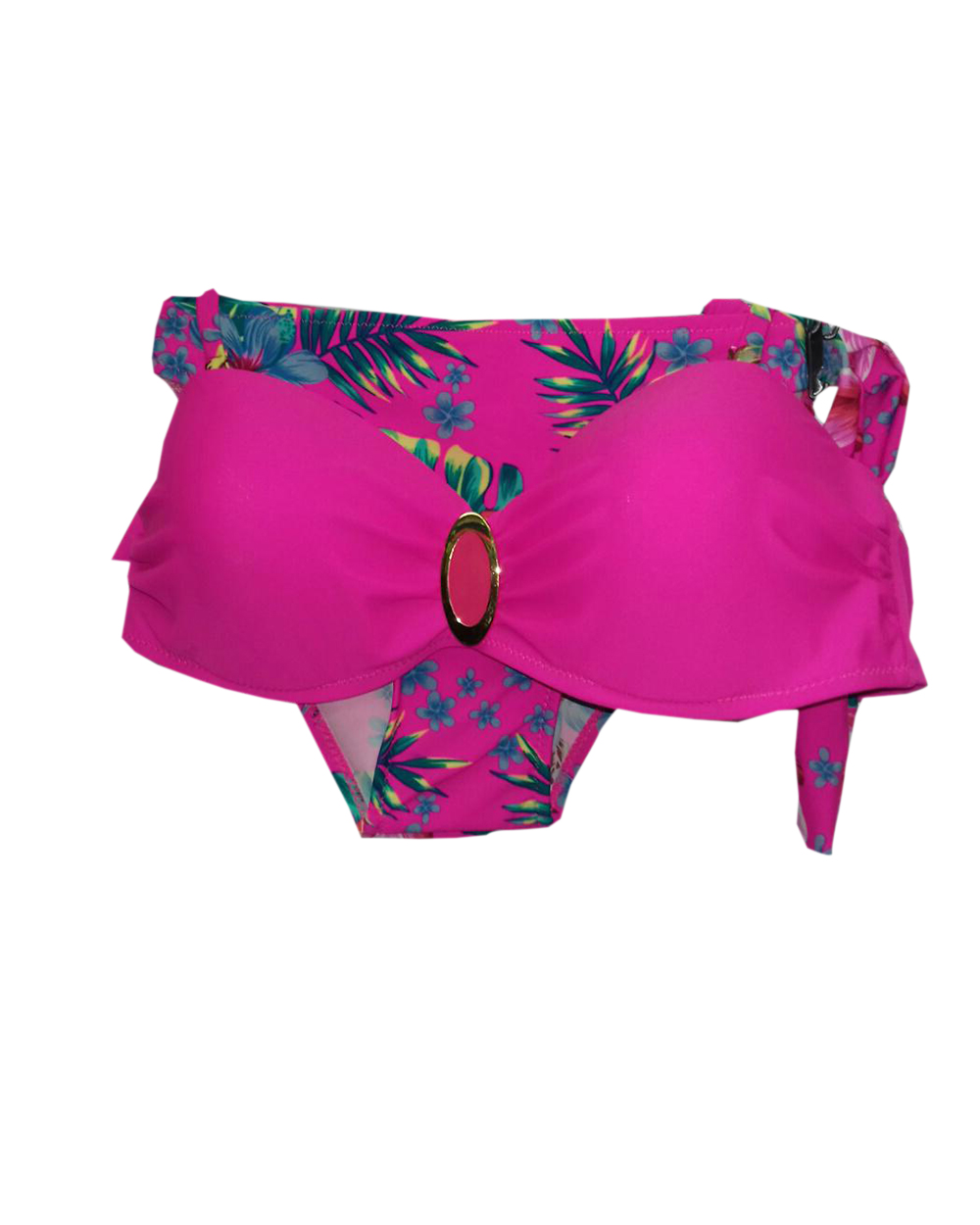 Раздельный купальник состоящий из лифа на завязках и классических плавок-трусиков.