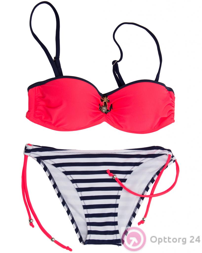 Купальник женский розовый с полосатым низом оптом