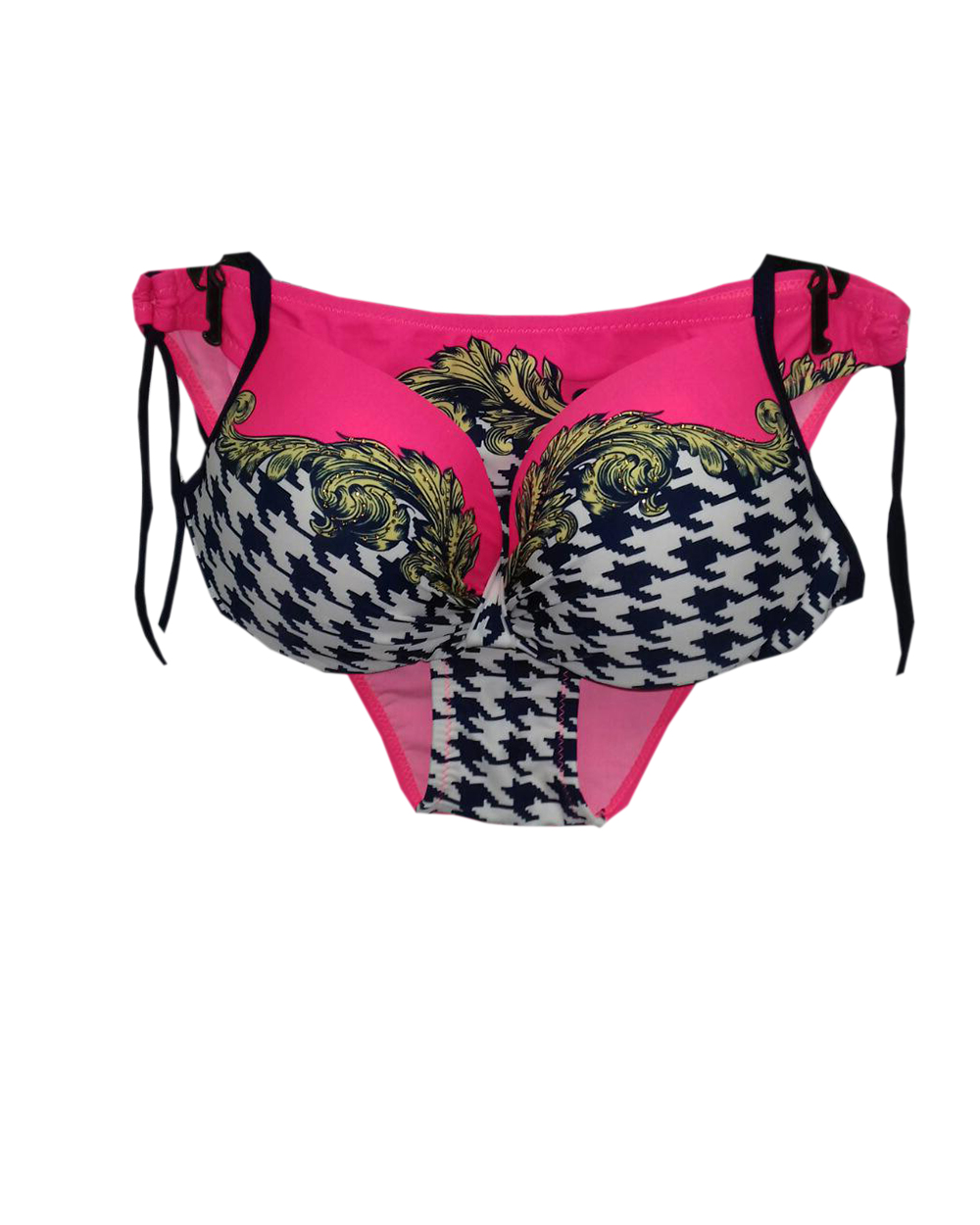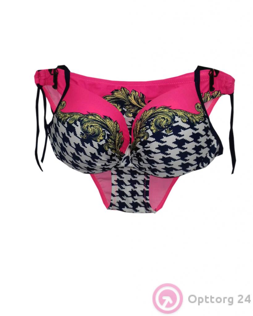 Стильный современный купальник с эффектным принтом гусиные лапки. Модель состоит из лифа на завязках и плавок.