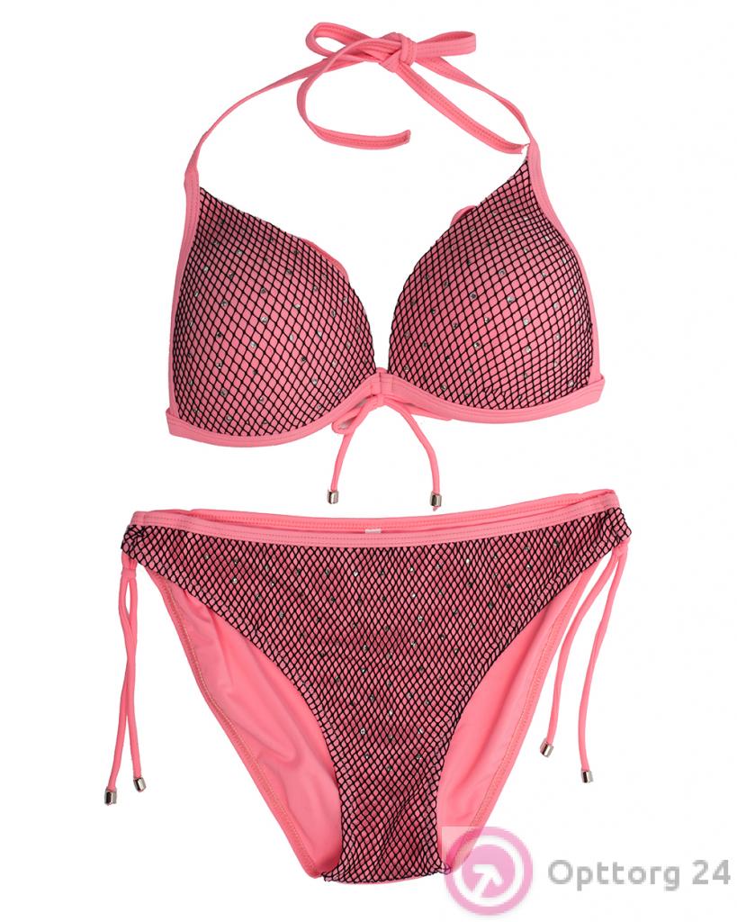 Купальник женский розовый с сеткой и стразами оптом