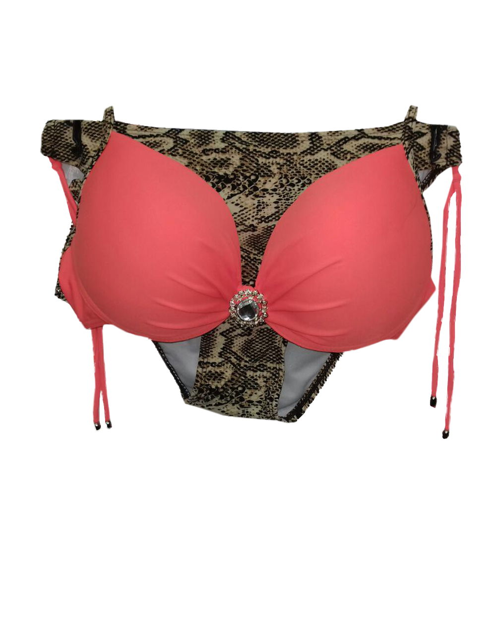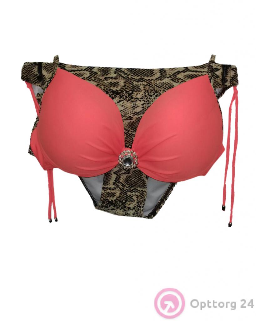 Купальник женский с кораллового цвета лифом и брошью оптом