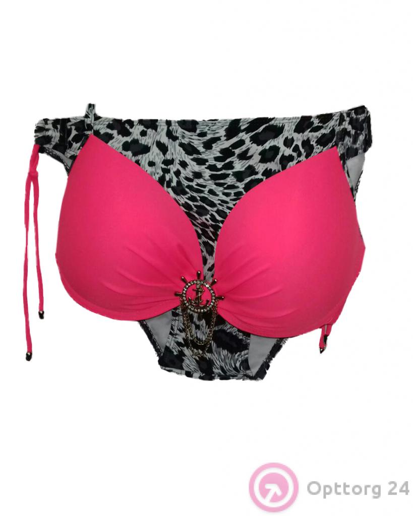 Купальник женский с розовым лифом и леопардовыми плавками оптом