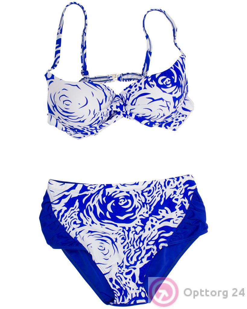 Купальник женский синий с белым узором оптом