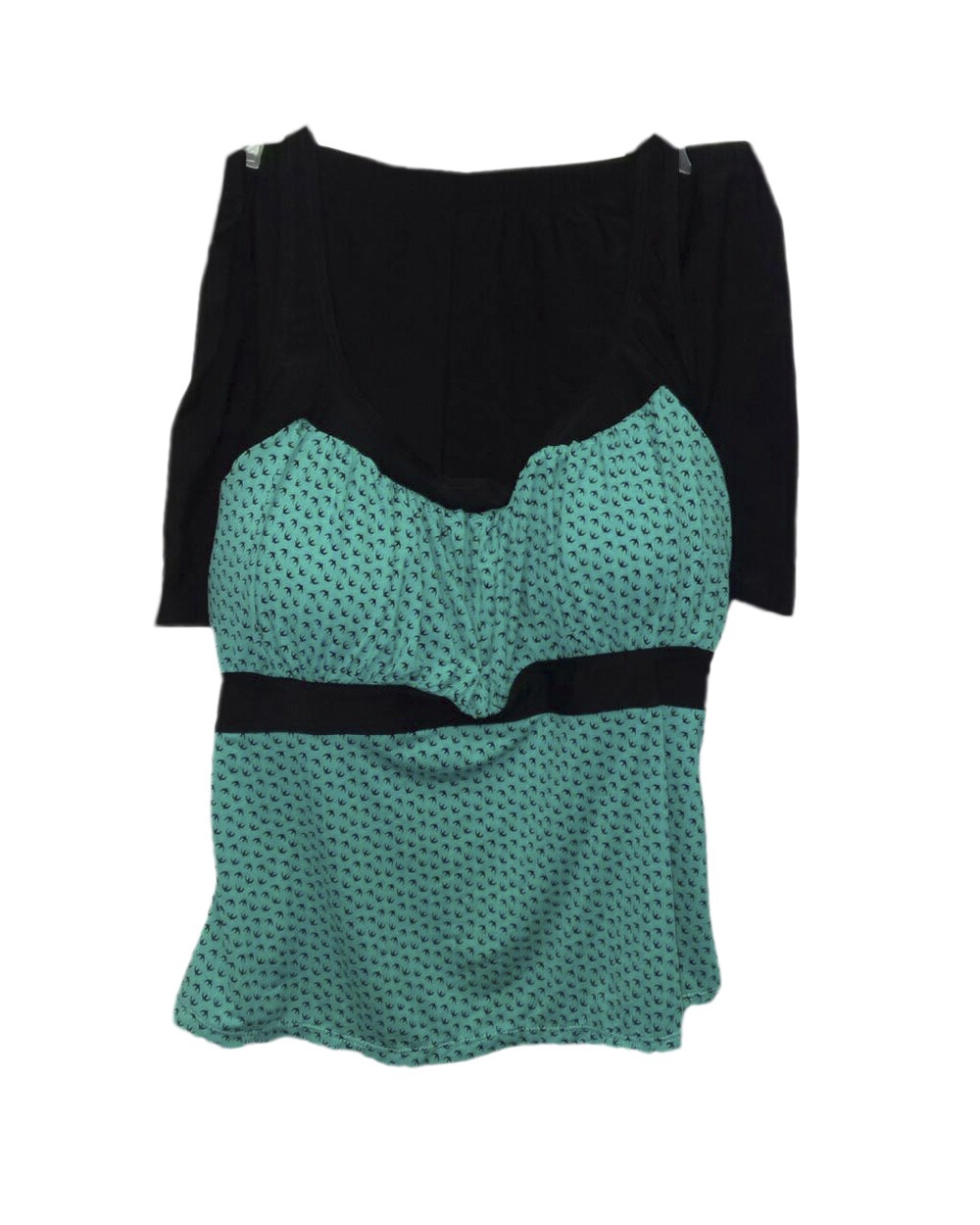 Женский купальник-танкини. Модель состоит из топа голубого цвета в горох, а также плавок-шортиков.