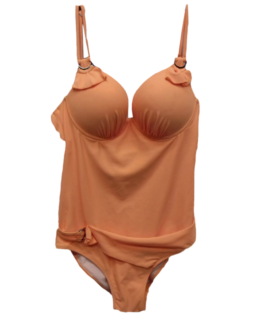 Женский слитный купальник с оборками по линии талии. Лиф с кисточками.