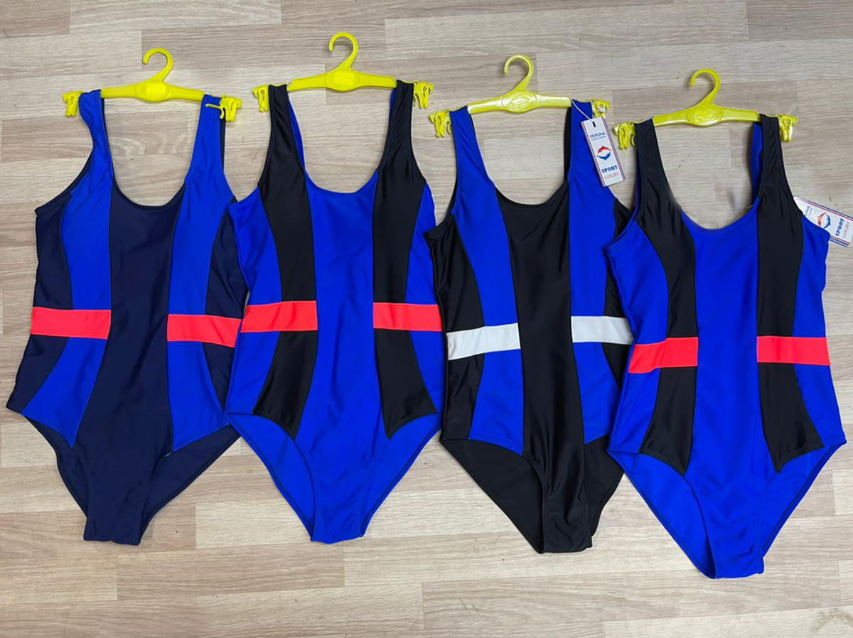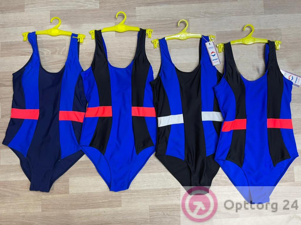 Описание: Купальник женский спортивный, закрытого типа с оригинальными полосками. С широкими бретельками. Мягкая чашечка со вставкой.