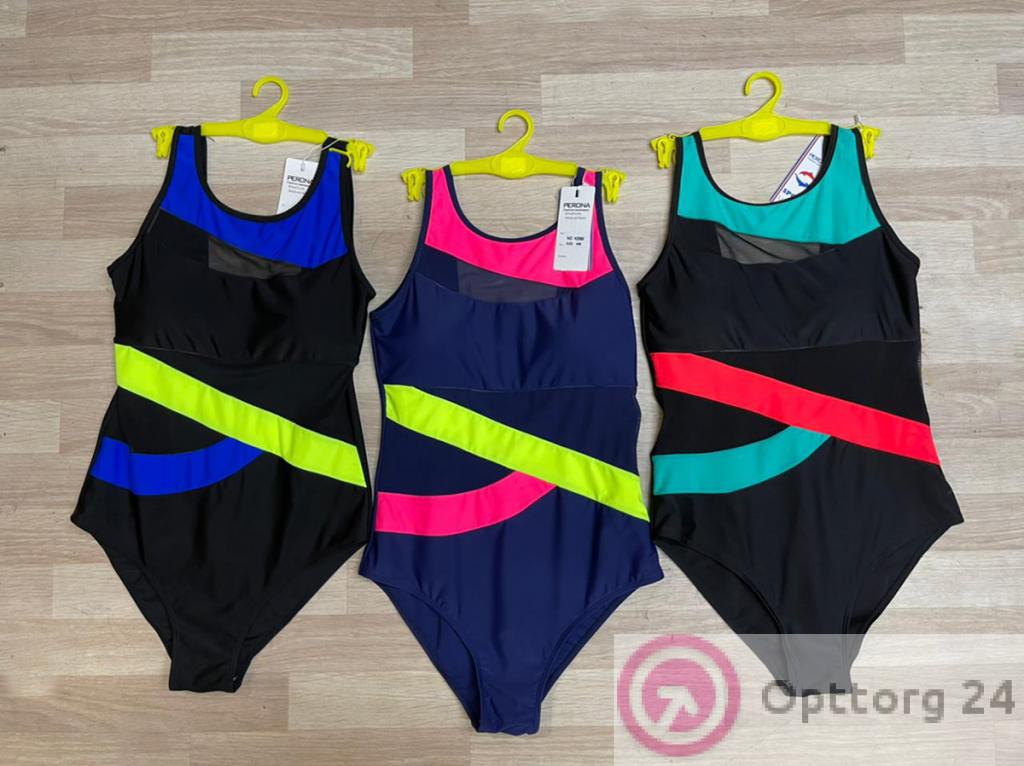 Купальник женский спортивный закрытый с полупрозрачной вставкой оптом