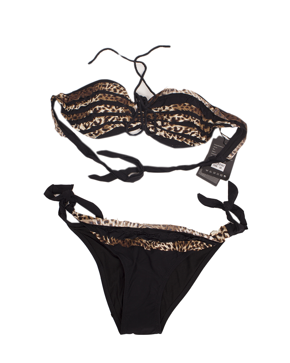 Оригинальный женский купальник на завязках. Модель удобно регулируется, благодаря чему отлично ложиться по фигуре. Плавки имеют среднюю посадку. Темно-коричневый цвет выгодно дополнен модным леопардовым принтом.