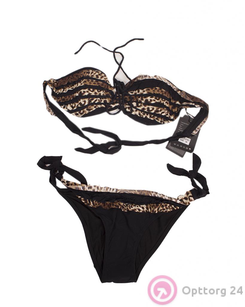 Купальник женский темно-коричневый с леопардовыми вставками оптом