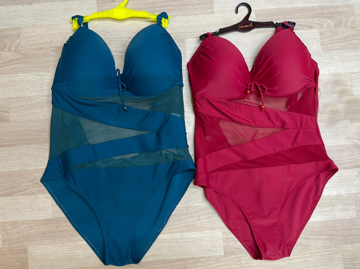 Описание: Купальник женский закрытый с тоненькими лямками и полупрозрачными вставками, больших размеров. Мягкая чашечка украшена бантиком.