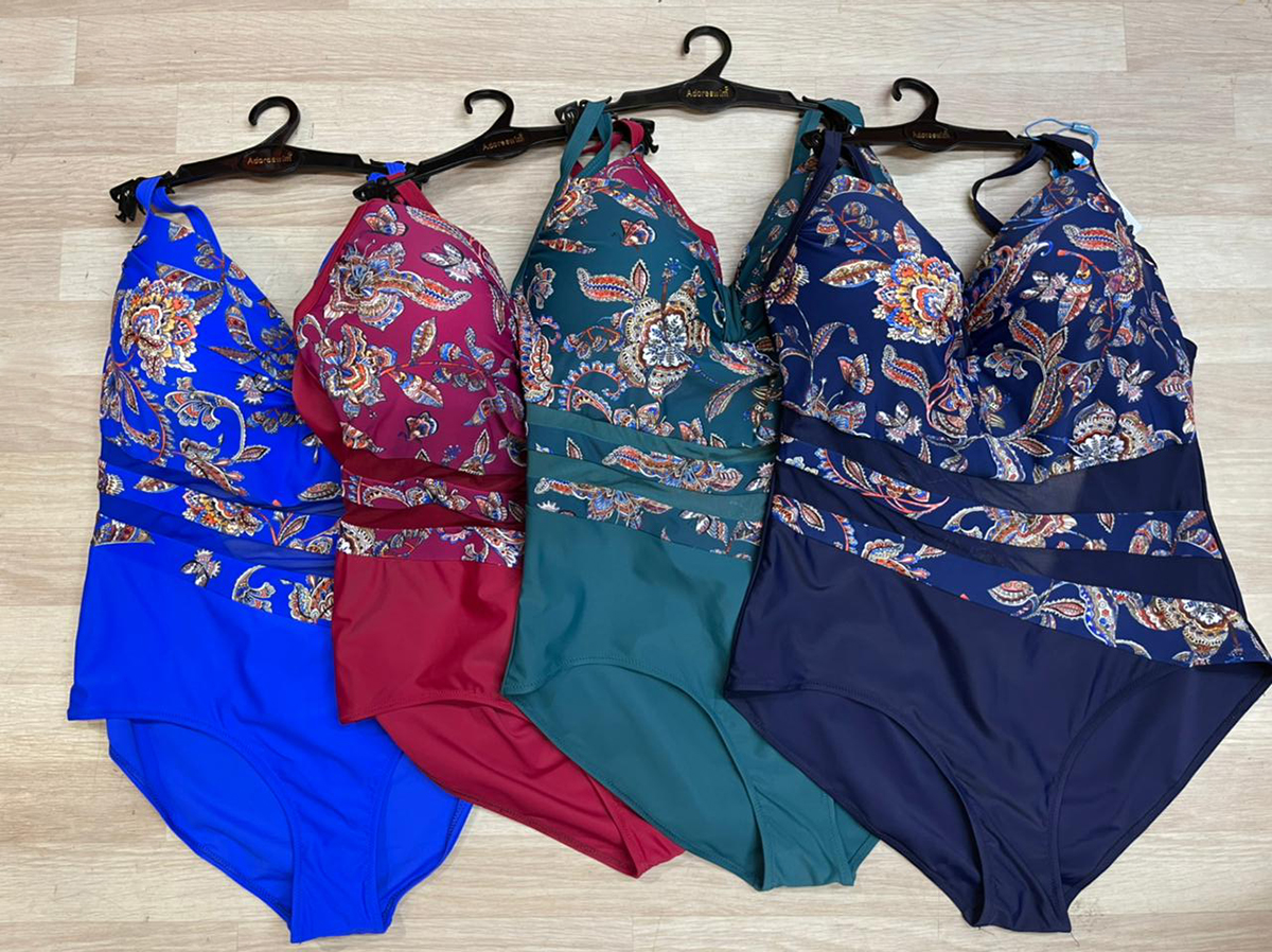 Описание: Купальник женский закрытый с тоненькими лямками и полупрозрачными вставками, больших размеров. Мягкая чашечка.