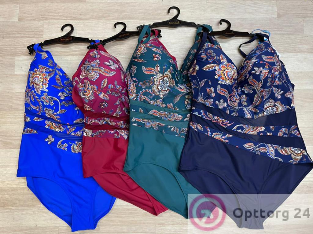 Купальник женский закрытый (большие размеры) с оригинальным принтом оптом