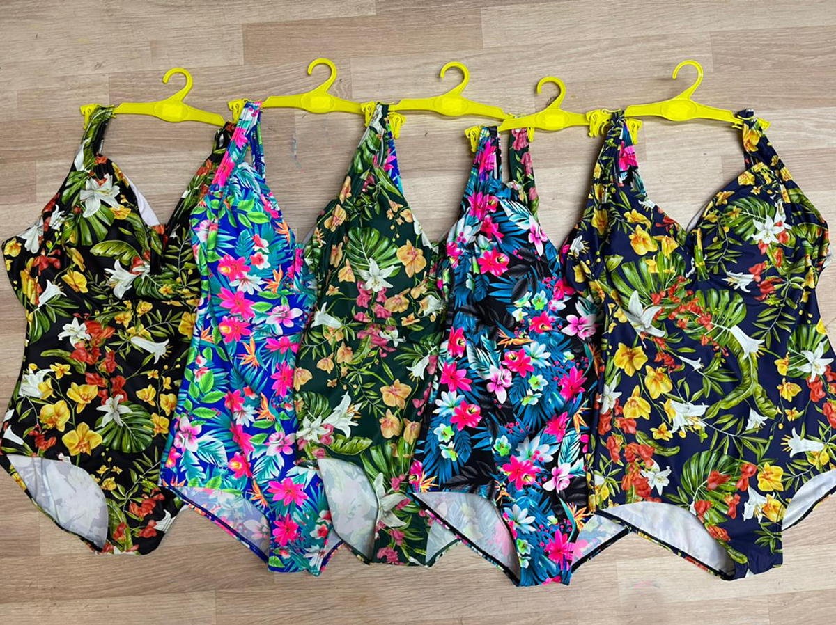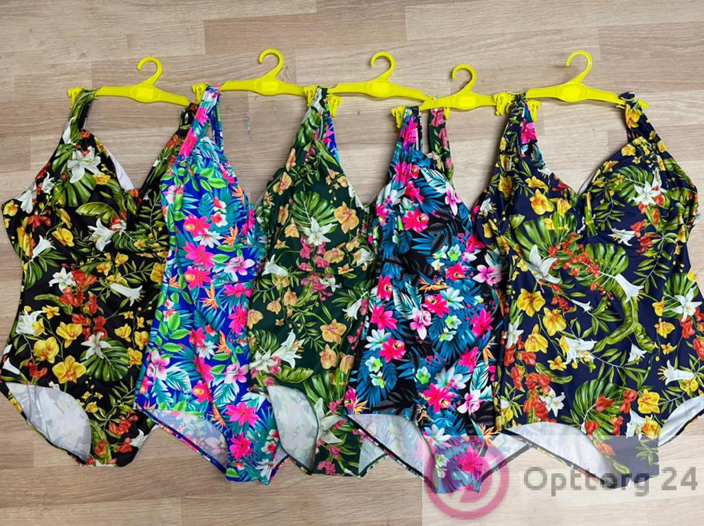 Купальник женский закрытый (большие размеры) с принтом цветов оптом