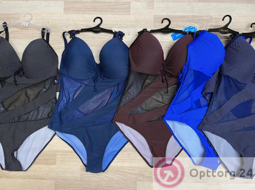 Купальник женский закрытый (большие размеры) в горошек оптом