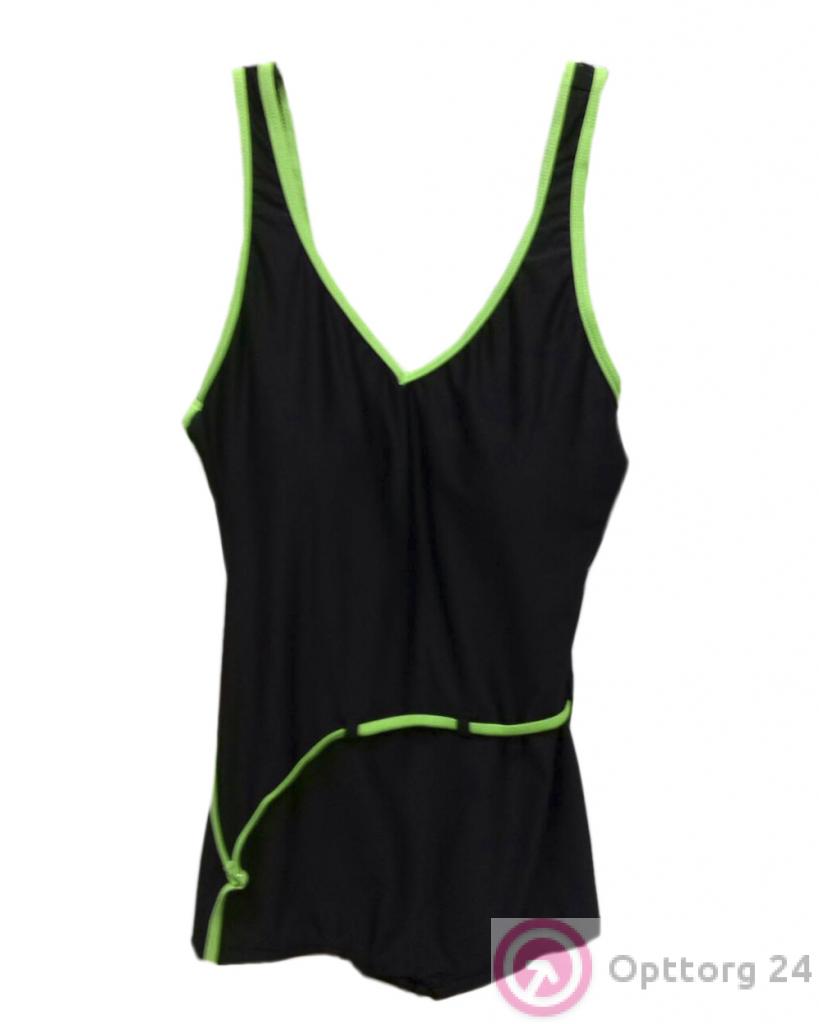Купальник женский закрытый мчерный с зеленой каемкой оптом