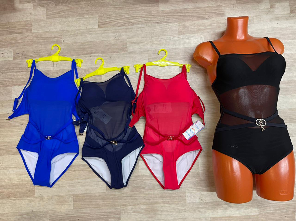 Описание: Купальник женский закрытый пляжный с декоративным ремешком. Полупрозрачный. С мягкой чашечкой.