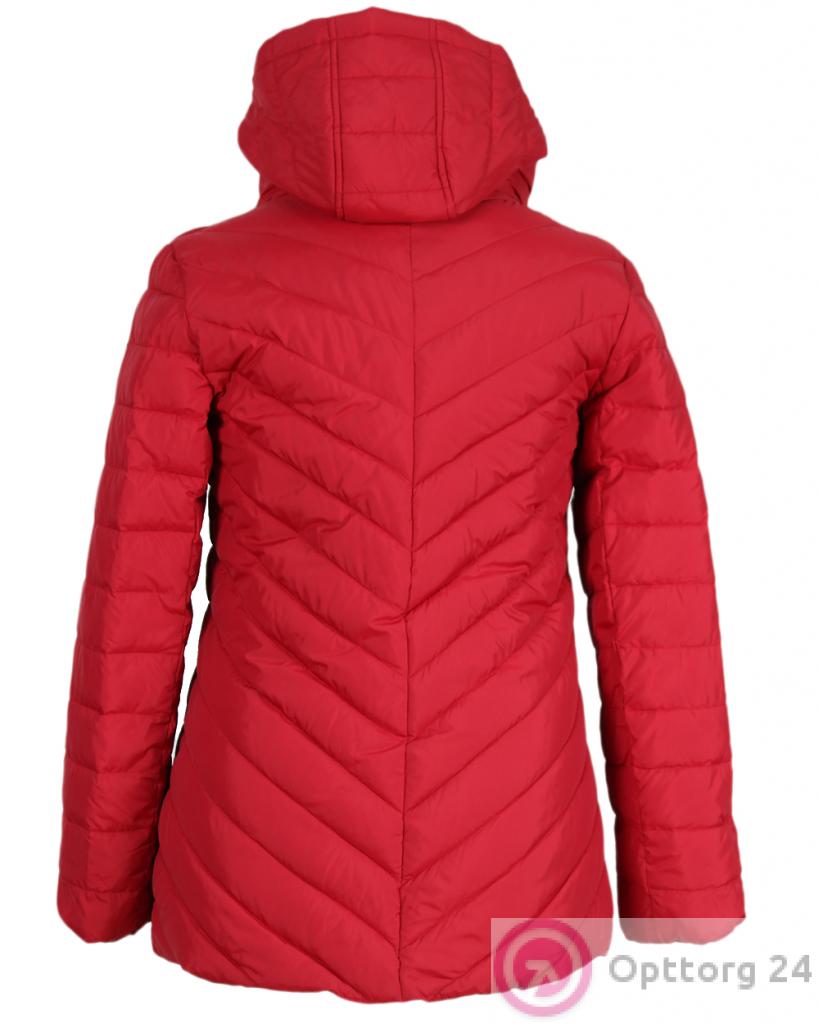 Симпатичная женская куртка красного цвета с прострочкой. Модель имеет воротник стойку и два боковых кармана на молнии. Есть капюшон.